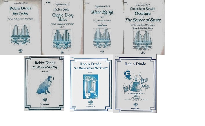 Robin Dinda's organ duos (works for four hands and four feet) have become standard repertory and have been performed and recorded by numerous organists worldwide.